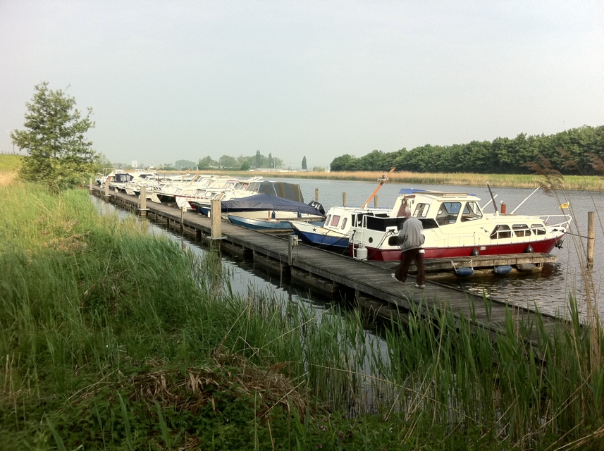 Om half 12 vertrokken. Na 200 meter was een brug. Hier moest ik wachten op een vrachtschip. Daarna met nog een jacht richting Vianen. Het vrachtschip liep niet zo hard. Bijna 9 km per uur. Om 1 uur was ik in de haven van Vianen, inderdaad was er nog ruimte in overvloed. Mooie steiger met een stroompaal. Steiger en gangboord waren precies gelijk.