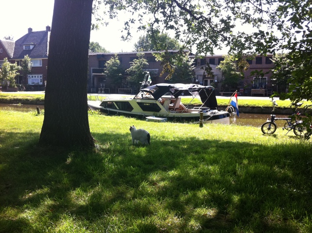 Zoals het er nu naar uitziet, blijf ik morgen hier nog liggen. Goede ligplaats, wel wat lawaai van auto’s, maar dan doe ik mijn gehoorapparaten niet in, dan valt het niet zo op.. Koki wilt door de passerende auto’s niet op de kant. Wel zo makkelijk. Er zijn ‘hier twee supermarkten, een vers-centrum heel dichtbij. Ook stroom en douches zijn er.